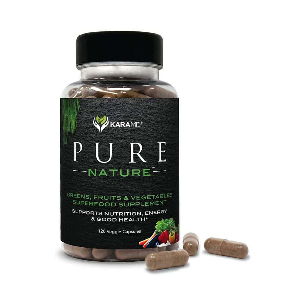 KaraMD Pure Nature is a whole-food supplement that can help provide your body with additional antioxidants, vitamins, and minerals. It includes various nutrient-packed fruits, veggies, herbs, and roots that may help fill nutritional gaps in your diet while offering energy and wellness support. If an individual has trouble maintaining a healthy diet or does not like the taste of vegetables, this supplement can be added to their diet to maintain balance.